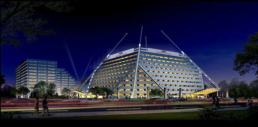 五星級酒店10層、酒店式公寓及寫字樓11層,均為框架-剪力墻結(jié)構(gòu)。地上總面積112692平方米,其中酒店部分建筑面積40513平方米,客房總鑰匙數(shù)372,寫字樓部分建筑面積28390,酒店式公寓部分建筑面積41506平方米,總戶數(shù)為469。